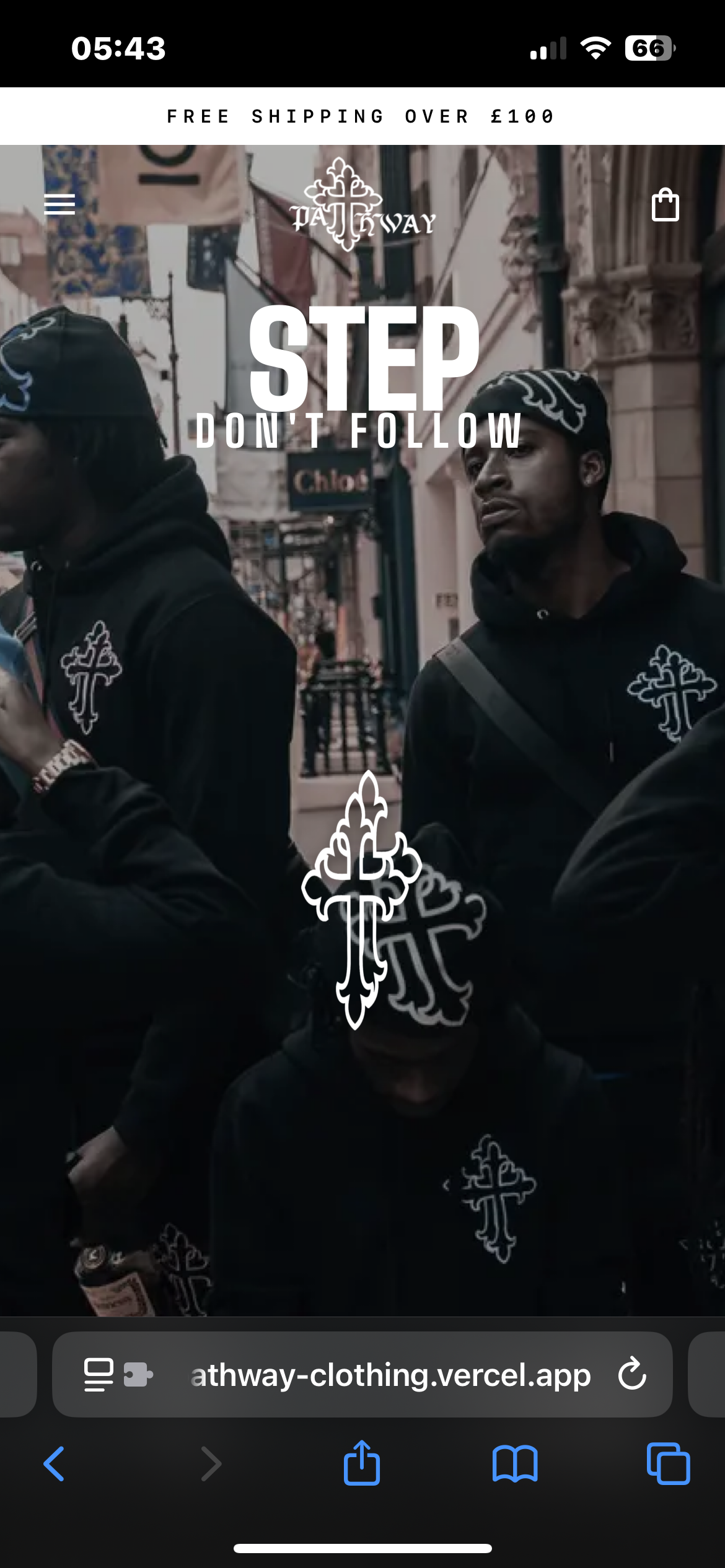 Full e-commerce storefront for a London streetwear brand. Shopify Storefront API, animated cart drawer, product catalogue, Members-only gated page and a brand identity built from scratch.